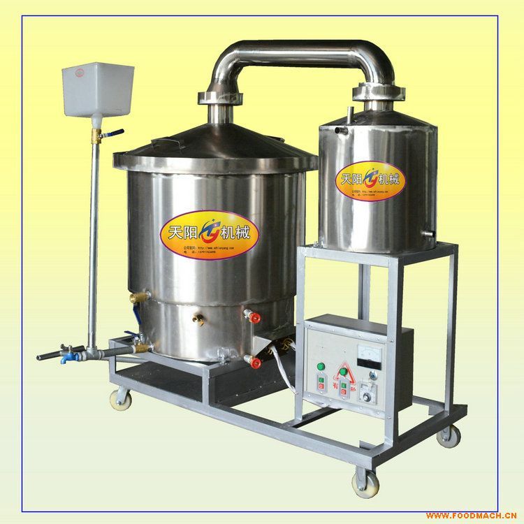 天陽純糧釀酒設(shè)備由蒸汽蒸餾鍋、鍋蓋、導(dǎo)氣管、冷凝器、電熱溫控裝置和移動(dòng)車組成,適合家庭,小型創(chuàng)業(yè)者,也適合中小型酒廠使用,具有環(huán)保節(jié)能,適用性強(qiáng),快速省時(shí),酒損失少,不焦鍋,酒質(zhì)清凈醇厚,口感舒適等特點(diǎn),蒸酒場(chǎng)地有20多平方即可,1人操作,可以直接在家庭自釀自喝,飯店和酒坊門店內(nèi)現(xiàn)蒸現(xiàn)賣。