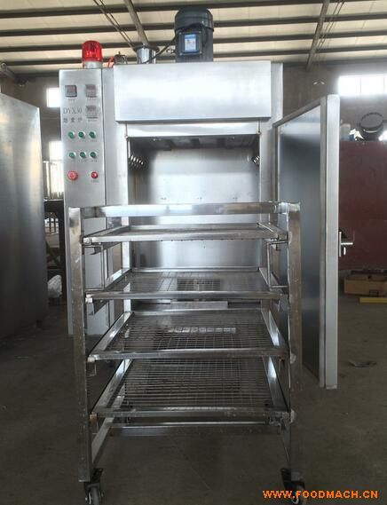 我公司的全自動煙熏爐是集蒸煮、烘干、煙熏、上色于一體的全自動煙熏爐,經(jīng)過煙熏后食品的顏色好看,還有一種煙熏后的香味,讓人感覺香而不膩,也能達(dá)到環(huán)保效果,徹底代替了傳統(tǒng)的煙熏爐方法,節(jié)省了工人的勞動力,提高工作效率,更增強了食品的口感及彈性。采用可編程控制,操作方便、簡單。干燥、蒸煮、煙熏三工序可按設(shè)定時間自動轉(zhuǎn)換,溫度按設(shè)定值自動調(diào)節(jié),工序結(jié)束自動顯示;主循環(huán)風(fēng)扇送風(fēng)均勻,使?fàn)t體內(nèi)溫度均勻,該機特別采用了雙層不銹鋼散熱器,對爐溫升溫迅速,干燥效果*,而目前國內(nèi)同關(guān)產(chǎn)品采用盤管式散熱器,兩者的升溫效果是無法比擬的。采用設(shè)定參數(shù)方式,通用性廣,自動運行中的參數(shù)可修正。