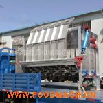 操作流程:1.設備到位后首先要檢查設備有無損壞和部件松動情況,先解決并確認沒有問題方可進入下一步。2.將60升液壓油倒入液壓站內(nèi),打開電源開關,設備開始運轉(zhuǎn),將液壓開關向下按,撈耙落入浸燙池內(nèi)。3.將宰殺好的生豬放入盛有65℃水溫的水中(視生豬品種和各種因素,水溫以當?shù)貙嶋H情況為準),浸燙半分鐘后,抬升液壓開關,撈耙將生豬撈起并滑入打毛機體內(nèi),開始打毛。4.約30秒左右,視豬體脫毛干凈后,踩踏設備液壓站下的踏板,離合松開擋豬欄,豬體隨著打毛輥滾動,順利轉(zhuǎn)出設備,打毛完成。注:操作過程中請注意操作安全