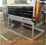 ,感覺很容易掉下來,就可以放到刨毛機里脫毛了。脫毛后的羊體很干凈,有效率達到98%,有個別部位 的毛,再人工稍微刮修一下就可以了。