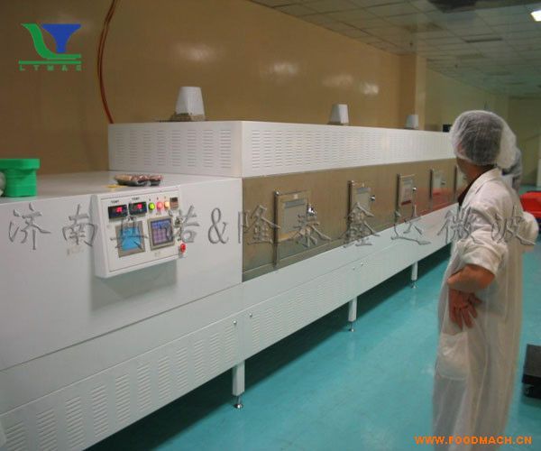 微波烘干熟化焙烤的特點(diǎn)——能量轉(zhuǎn)換效率高,加熱速度快。微波爐本身不發(fā)熱,而是微波能量穿透物料,使物料內(nèi)極性分子相互摩擦而產(chǎn)生內(nèi)部熱量。使被加工物料內(nèi)部的液體瞬間升溫汽化、增壓膨脹;并依靠氣體的膨脹力使組分中高分子物質(zhì)結(jié)構(gòu)變性,而成為具有網(wǎng)狀組織結(jié)構(gòu)特征、定型的多微孔狀物質(zhì)。微波焙烤的同時(shí),伴隨殺菌效應(yīng)。微波殺菌是在微波的熱效應(yīng)和非熱效應(yīng)的雙重作用下進(jìn)行的,相比常規(guī)的溫度殺菌能在較低的溫度和很短的時(shí)間內(nèi)獲得滿意的殺菌作用。一般的殺菌溫度在80℃左右,處理時(shí)間在3~5分鐘,且能*大限度保存營(yíng)養(yǎng)成分