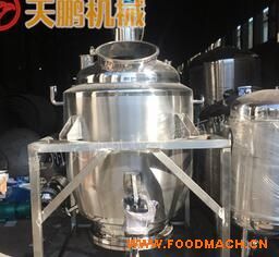 將需提取藥材投入提取罐內(nèi),按生產(chǎn)工藝加入一定比例的溶媒如水、乙醇、甲醇、丙酮等(根據(jù)工藝自行加入)。進(jìn)行原藥提取,提取溫度可根據(jù)實(shí)際需要設(shè)定。按生產(chǎn)工藝進(jìn)行提取,待提取結(jié)束后,將管道閥門按先后順序打開,把液體抽入濃縮罐進(jìn)行濃縮。濃縮液溫度設(shè)定在需要值,真空度保持在-0.05到-0.09MPA,濃縮時產(chǎn)生的二次蒸汽經(jīng)過冷凝器與冷卻器變成冷凝液回流至提取罐做新溶劑加入藥里,新溶劑由上而下通過藥材層到提取罐底部,藥材中的可溶性成分溶解于提取罐內(nèi)溶劑,送至提取罐做新溶劑,形成新溶劑回流提取,直至完全溶出(提取液無色)濃縮繼續(xù)進(jìn)行,直至濃縮成需要的比重藥膏,提取罐內(nèi)的無色液體可下次復(fù)用。