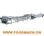 傳送帶為不銹鋼網(wǎng)帶,其上設(shè)有刮板,可用于散裝、袋裝、瓶裝食品的常溫殺菌。